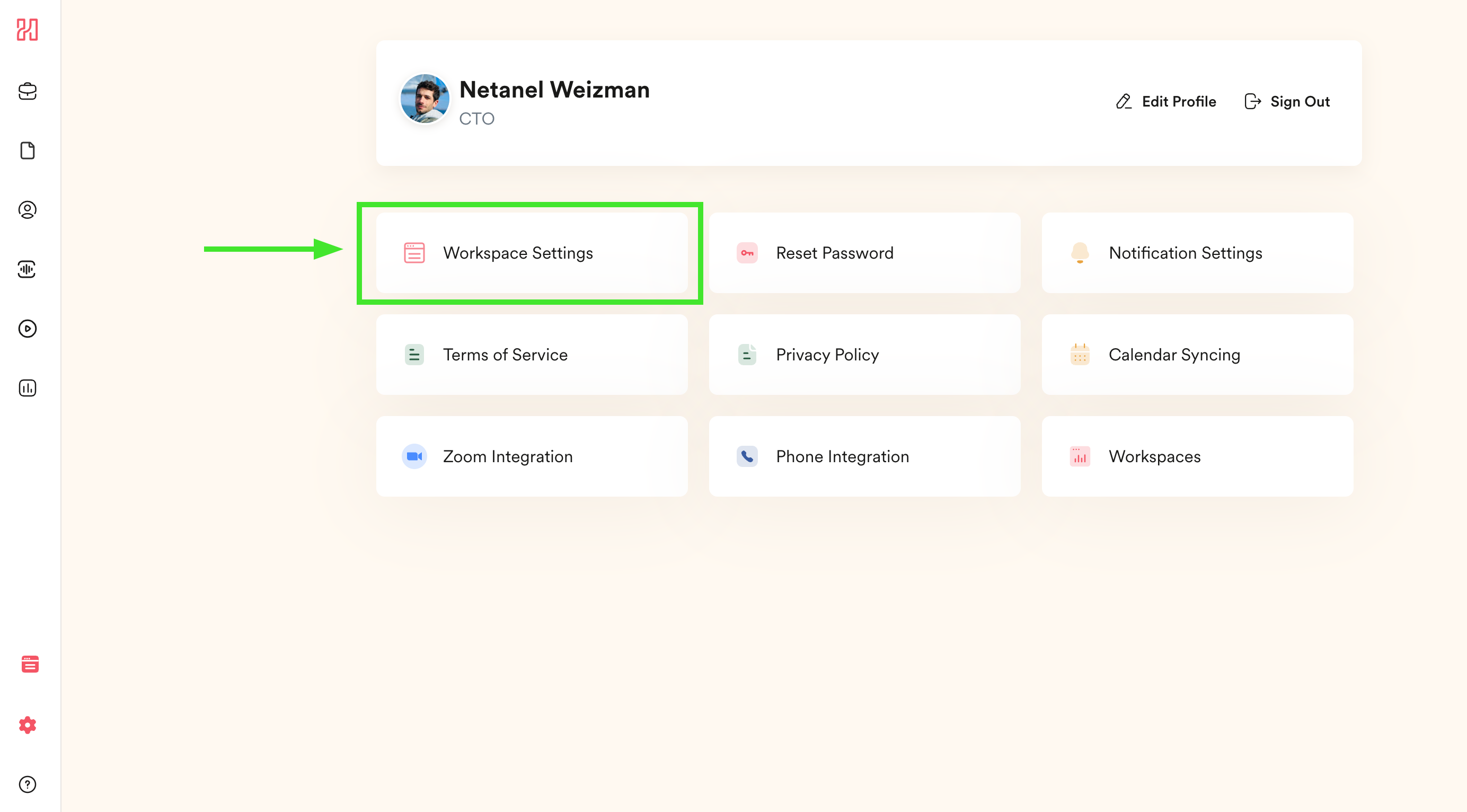Click "Workspace Settings"